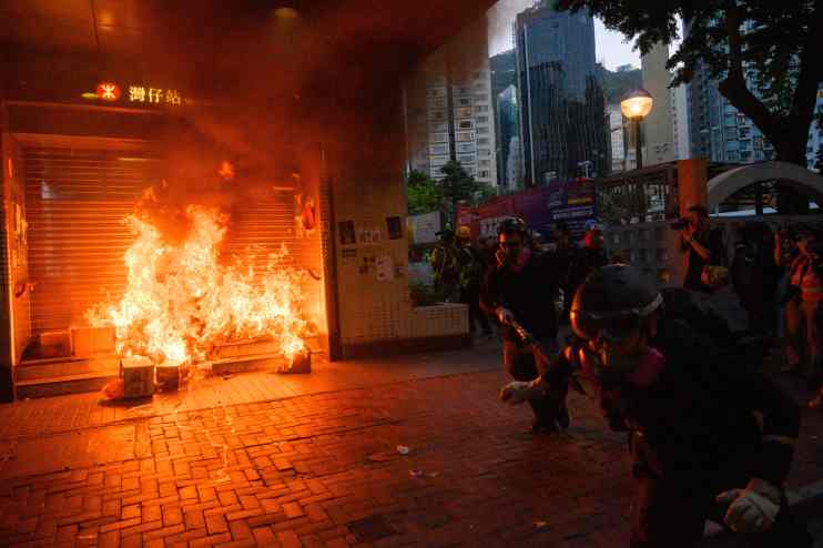 Anti-government protests in Hong Kong showed no signs of letting up today, as police fired water cannons and tear gas to disperse demonstrators throwing petrol bombs at government buildings.